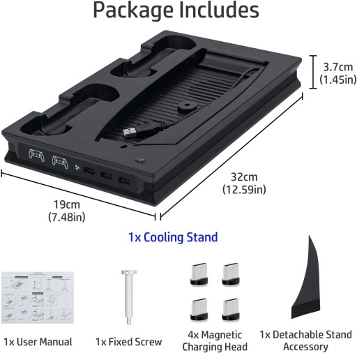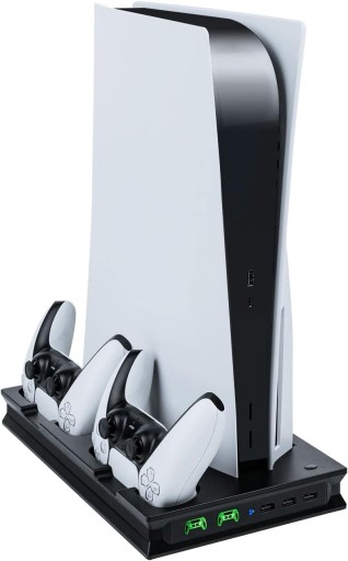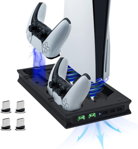 Podstawka chłodząco-ładowująca do PS5: wielofunkcyjna pionowa podstawka chłodząca typu „wszystko w jednym”, specjalnie zaprojektowana dla konsol PS5 UHD i wersji cyfrowej (nie dla PS5 Slim)