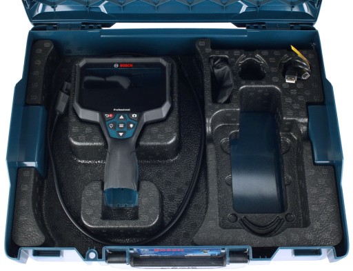 Poręczna kamera inspekcyjna GIC 12V-5-27 C BOSCH z elastycznym przewodem 150 cm, które pozwala na dotarcie do trudno dostępnych miejsc np. schowane części silnika, układy kanalizacyjne za ścianą i tym podobne. Urządzenie dzięki uniwersalnemu zastosowaniu doskonale sprawdza się w pracy każdej profesji, która ma do czynienia z trudno dostępnymi miejscami (mechanicy, inspektorzy, hydraulicy, monterzy instalacji sanitarnych, grzewczych, wentylacyjnych)