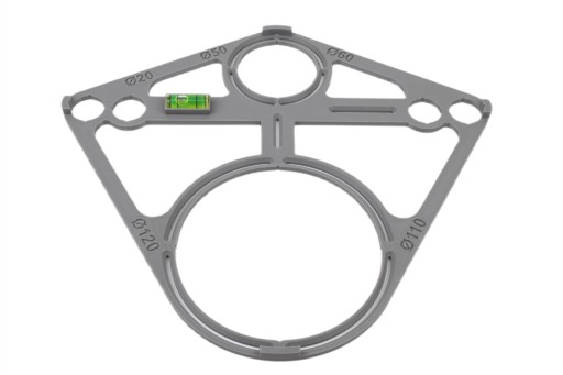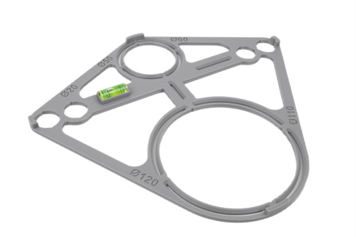 Narzędzie umożliwia dokładne odwzorowanie wymiarów potrzebnych do otworów w stelażach podtynkowych, umożliwiając oszczędność czasu i zwiększając precyzję pracy. Szablon wyposażony jest w Libellę (poziomicę) co umożliwia idealne ustawienie w poziomie.