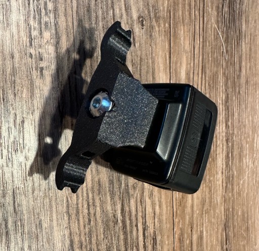 Mocowany na opaski zaciskowe na szynach standardowych siodełek rowerowych (pręty okrągłe).