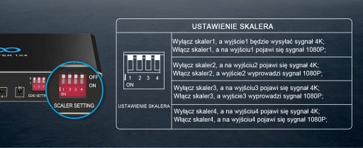 - zarządzanie EDID, funkcję zmniejszania rozdzielczości. Kabel HDMI krótszy niż 3 metry.