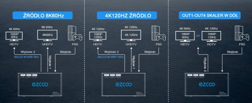 - obsługuje jednoczesne wyjście 4K 120Hz i 1080P 120Hz.