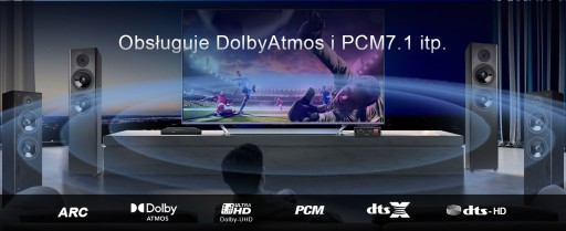 - Dolby Atmos, DTS X, Dolby True HD, DTS-HD PCM 7.1.