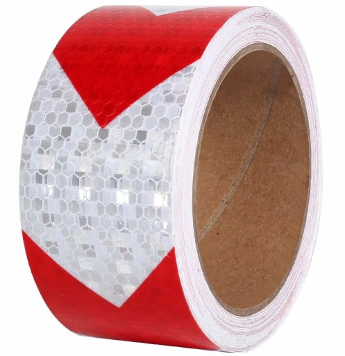 СВЕТООТРАЖАЮЩАЯ ЛЕНТА САМОКЛЕЙКАЯ НАКЛЕЙКА ИЗ ФОЛЬГИ БЕЛАЯ КРАСНАЯ СТРЕЛКИ 5 СМ