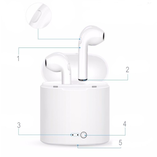 Bezprzewodowe słuchawki Bluetooth i7s TWS z powerbankiem zyskały już grono zwolenników. Wygodny powerbank pozwala przechowywać słuchawki, zabezpieczając przed zgubieniem oraz doładowuje je, gdy wyczerpie się ich bateria. Wielką zaletą tego sprzętu jest fakt, iż można używać jednej słuchawki (lewej) lub obu jednocześnie. Zestaw jest kompatybilny z większością urządzeń Bluetooth, współpracuje z systemami Windows, Android i iOS.