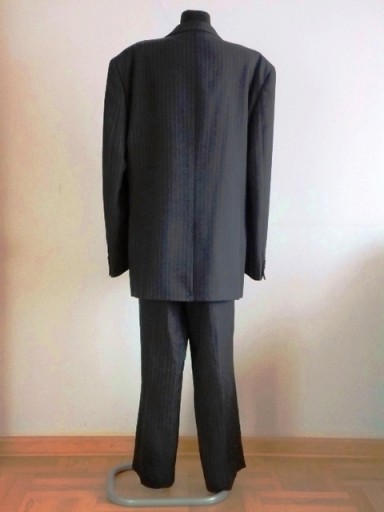 Garnitur Meski, firmy Taylor & wright, kolor czarny w paski, materiał garniturowy z dodatkiem 22% wiskozy, marynarka zapinana na 2 guziki, stan idealny.
