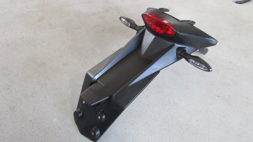Komplet owiewek pod siedzenie plus błotnik z lampą ,kierunkowskazami i oświetleniem tablicy rej KTM Duke 125 model 11-16 rok. Pochodzi dokładnie z ostatniego roku produkcji czyli 2016. Części są w ładnym stanie , nie były klejone ani naprawiane, wszystkie mocowania całe. Kierunkowskazy sprawne. Cena za komplet ze zdjęć ale istnie także możliwość zakupu każdego elementu osobno.