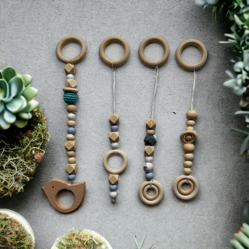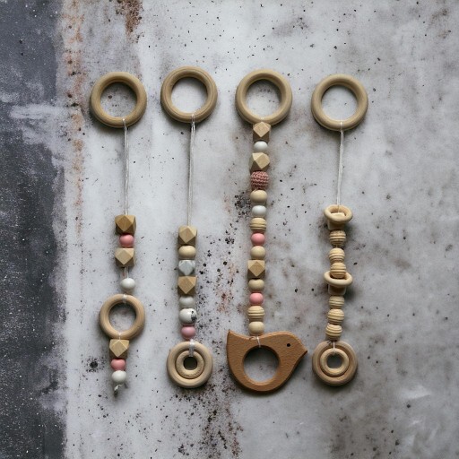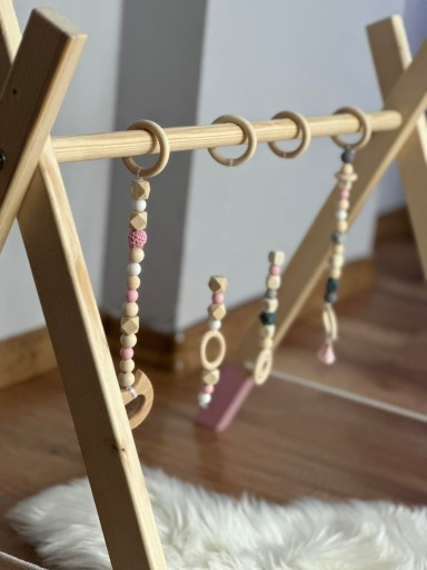 Stojak Edukacyjny, Baby GYM, naturalny, drewniany 4 zawieszki GRATIS