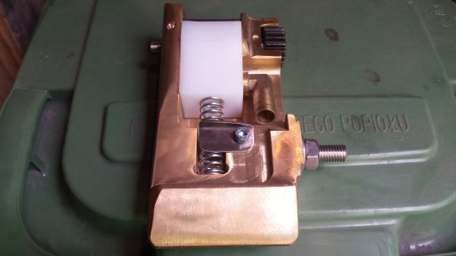 Maszyna przeznaczona do sklejania pudełek klapowych. Docisk po sklejeniu każdego pudełka powoduje że klapki długie i krótkie są dokładnie w jednym poziomie. Końcowy docisk na "płasko " powoduje że np. 20 szt pudełek w paczce ma kształt ładnej kostki a nie beczki.
