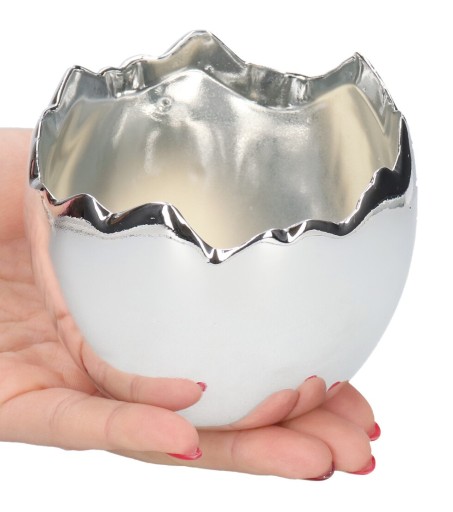 Jajko ceramiczne o wymiarach 8 cm wysokości i 10 cm szerokości to idealna ozdoba zarówno do stroika jak i jako samodzielna dekoracja. Mamy tutaj do czynienia z jajkiem w kolorze srebrnym, które wprowadzi świeżość i radość do Twojego wnętrza.