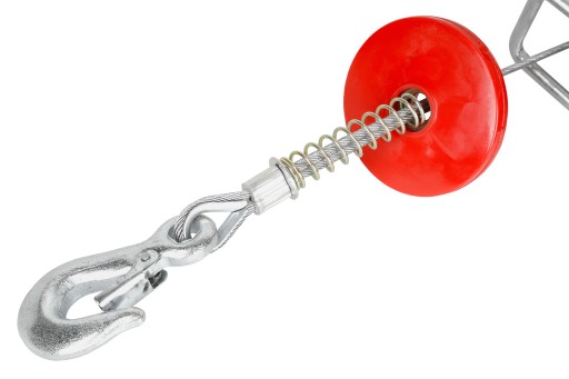 hak wyposażony w mechanizm zabezpieczający zapobiega przypadkowemu wypięciu się obciążenia, zapewniając bezpieczne użytkowanie.