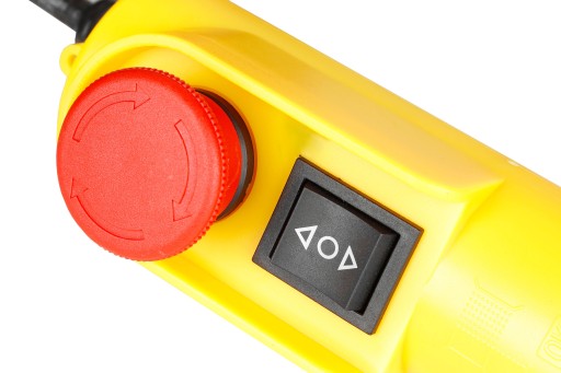 pilot wyposażony w kondensator rozruchowy oraz zabezpieczenie przed przypadkowym użyciem umożliwia precyzyjne zwijanie i rozwijanie liny. Przycisk nie blokuje się w pozycji włączonej, co zapewnia maksymalne bezpieczeństwo i kontrolę nad urządzeniem.