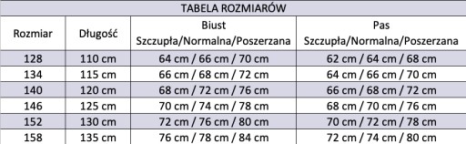Sukienka w rozmiarach 128, 134, 140, 146, 152, 158