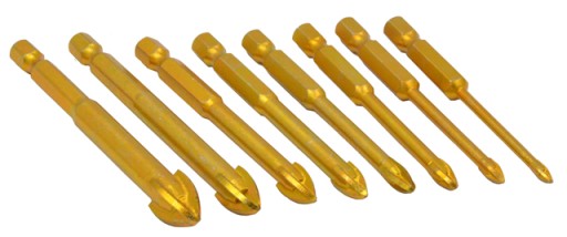 Wiertła wykonane zostały ze stali z węglika wolframu, co dodatkowo zabezpiecza wiertło przed zbyt szybkim zużyciem. Element wiercący składa się z czterech ostrzy tnących.