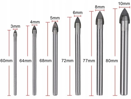 - Wiertła o rozmiarach: 3, 4, 5, 6,7, 8,10,12 mm