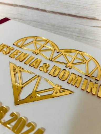 - Wyjątkowy design: Nasza księga gości została zaprojektowana z myślą o elegancji i glamour, z wykorzystaniem laserowo wyciętego serca z lustrzanej pleksi jako głównego elementu. Ten unikalny detal nadaje naszej księdze niezwykłego blasku i uroku, czyniąc ją wyjątkową pamiątką z Waszego wesela.