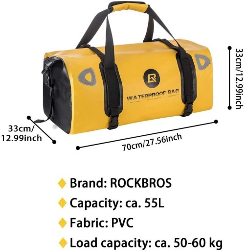 - rolowane zamknięcie sprawia, że torba jest w 100% wodoodporna