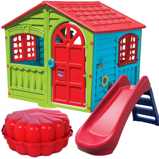 DOMEK OGRODOWY + ZJEŻDŻALNIA 130cm + PIASKOWNICA 2 szt