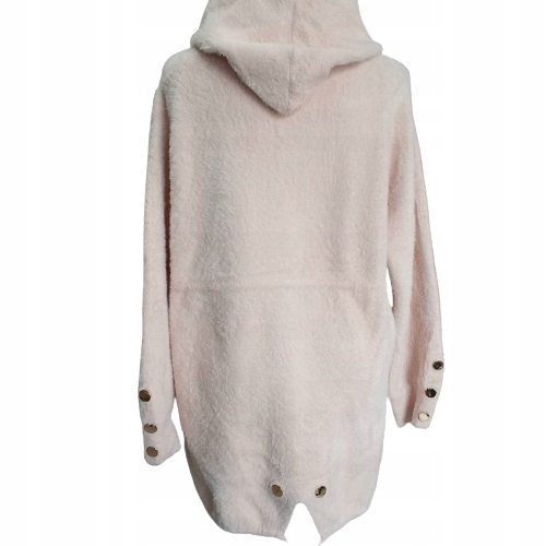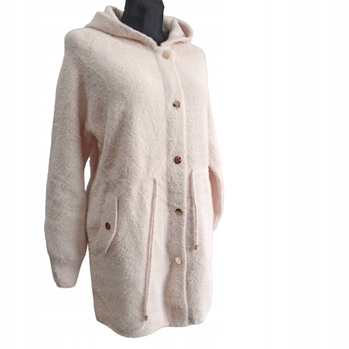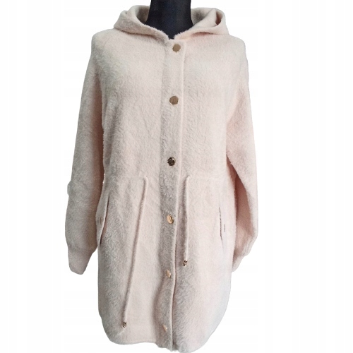 Średniej długości płaszcz z dużą domieszką wełny i angory. Posiada kaptur oraz dwie funkcyjne kieszenie. Zapinany na napy oraz zamek w kolorze złotym będzie idealny na wiosenno-jesienny sezon. Wykonany z przyjemnego materiału, który zatrzymuje ciepło. Będzie świetnie wyglądać zarówno z prostymi dżinsami, jak i w wersji eleganckiej ze skórzanymi spodniami. Dostępny w różnych kolorach.