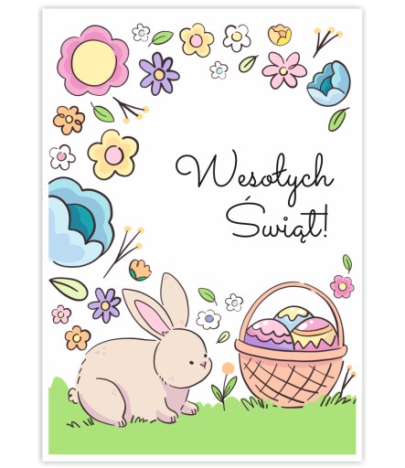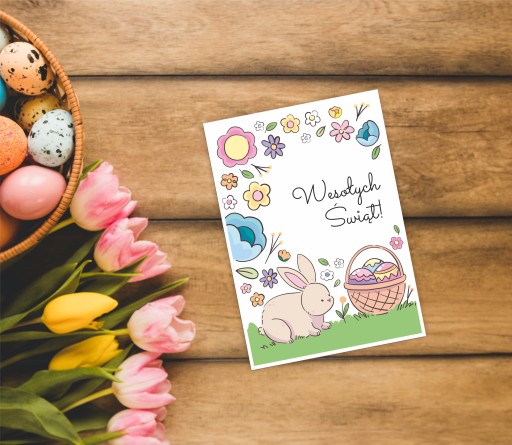 Kolorowa kartka z motywem wielkanocnym będzie idealnym upominkiem do wręczenia z okazji Świąt Wielkanocnych.