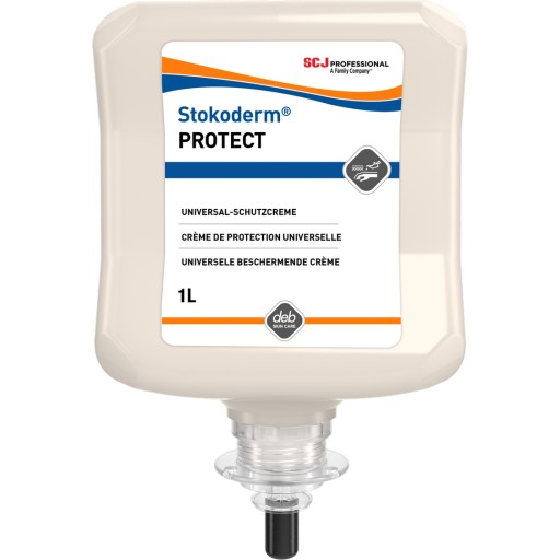 Krem ochronny DEB-STOKO Stokoderm Protect Pure 1000ml . Uniwersalny krem ochronny stosowany przed przystąpieniem do pracy w środowisku wodnym lub olejowym. Pomaga chronić skórę przy lekkim i umiarkowanym narażeniu na oleje, tłuszcze, smary i detergenty.