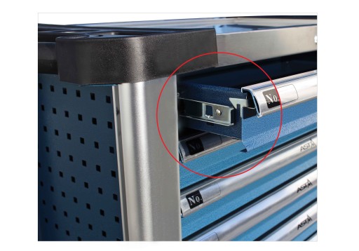 - szuflady na szynach z blokadą zapobiegającą przypadkowemu otwieraniu.
