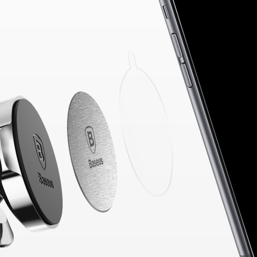 Baseus Magnet Iron Suit to zestaw 2 okrągłych, metalowych płytek, które po przyklejeniu na obudowę lub etui telefonu, umożliwiają korzystanie z magnetycznych uchwytów samochodowych.