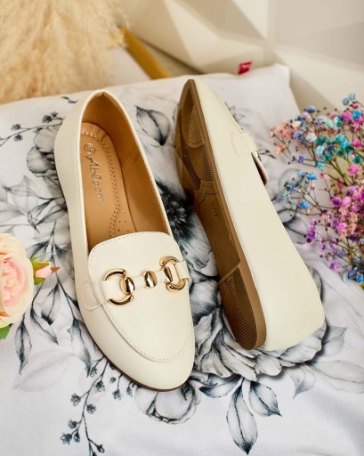 Klasyczne damskie mokasyny na płaskiej podeszwie. Model jest wykonany ze skóry ekologicznej. Posiada ozdobę na nosku. Idealna baza na co dzień!