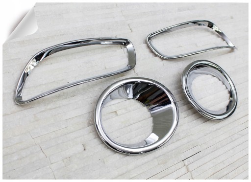 Zestaw zawiera komplet dwóch osłon halogenów. Produkt wykonany z wysokiej jakości chromowanego tworzywa ABS. Montowane są za pomocą taśmy dwustronnie klejącej Scotch 3M, zaaplikowanej na wewnętrznej stronie elementów. Zalecamy montaż profesjonalny.