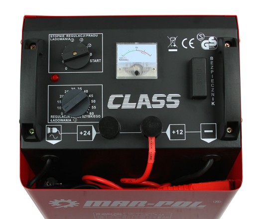 Prostownik CLASS 850 z funkcją rozruchu to profesjonalne narzędzie do ładowania i wspomagania rozruchu akumulatorów ołowiowo-kwasowych o napięciu 12 V, 24 V i pojemności akumulatorów od 80 Ah do 1000 Ah. Posiada dodatkowy bezpiecznik 50A. Prostownik cechuje się solidną metalową obudową odporną na uszkodzenia mechaniczne oraz zużycie. Posiada on wbudowany amperomierz, który umożliwia kontrolę ładowania oraz dokładny odczyt chwilowego natężenia prądu. Amperomierz pozwala również na określenie poziomu naładowania akumulatora.