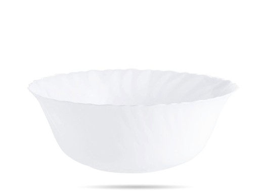 Salaterka Feston Luminarc. Duża salaterka do sałatek i innych dań. Feston wniesie powiew świeżości do domowej zastawy stołowej. Gładka, biała salaterka ze szkła hartowanego - lekka i mocna. Salaterka do domu i gastronomii.