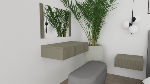 Wiszące meble otrzymują dobre opinie za swoją funkcjonalność oraz minimalizm. Prezentowana szafka nocna zajmuje niewiele miejsca, a ponadto świetnie się prezentuje. Z serii RIVA mamy w sprzedaży również toaletkę/ konsolę i lustro .