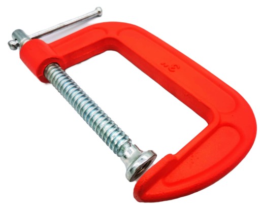 Ścisk wykonany jest z mocnego materiału, odpornego na zużycie czy wyginanie oraz pokryty czerwonym lakierem. Stalowy gwint zapewnia dokładność docisku, a obrotowa stopka rozłoży ciśnienie na większą powierzchnię i nie zniszczy ściskanego elementu.