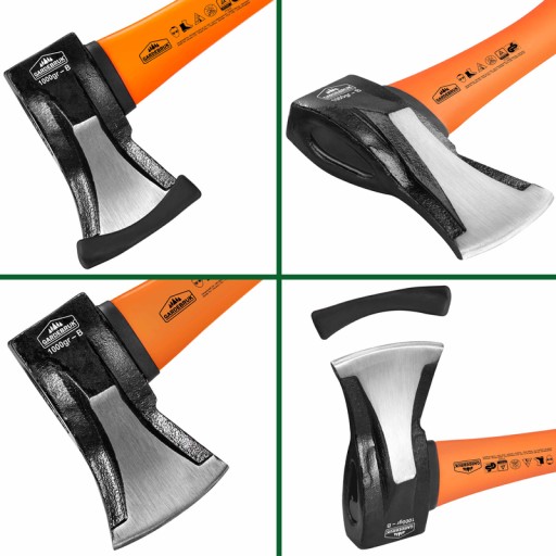 - Zarówno siekiera, jak i topór posiadają poręczny otwór do wieszania na końcu rękojeści