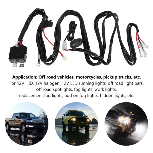 Funkcja:1. Zastosowanie: uprząż nadaje się do 12 V HID, 12 V halogen, 12 V LED światła do jazdy, listwy oświetleniowe terenowe, reflektory terenowe, światła przeciwmgielne, światła robocze, wymienne światła przeciwmgielne, dodatkowe światła przeciwmgielne, ukryte światła itp.