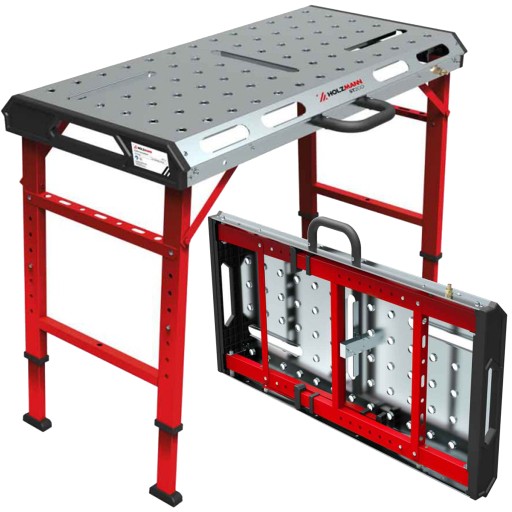 Mobilny stół spawalniczy ST2GO firmy HOLZMANN można łatwo złożyć w celu wygodnego transportu do miejsca pracy. Regulacja wysokości, dzięki czemu idealnie dopasowuje się do rozmiaru ciała.