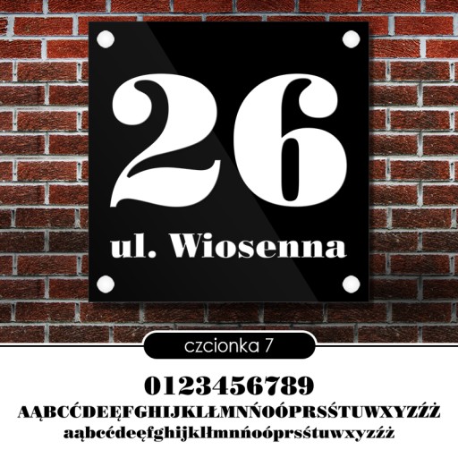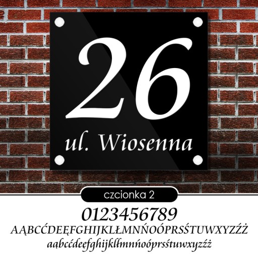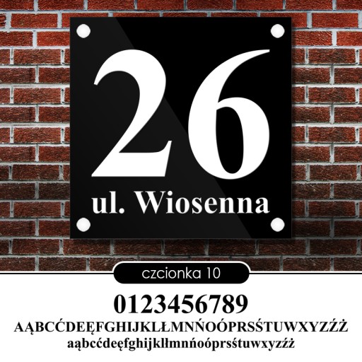 Proponujemy 10 estetycznych i bardzo czytelnych czcionek. Wszystkie posiadają polskie znaki. Dlaczego 10 a nie 50? Ponieważ mamy duże doświadczenie w realizacji tablic adresowych, wiele czcionek kompletnie nie nadaje się do zapisania adresu dlatego właśnie korzystamy tylko z tych, które uważamy za właściwe.