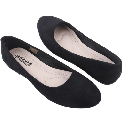 R.41 CZARNE BALERINKI DAMSKIE BUTY WSUWANE PŁASKIE GŁADKI WKŁADKA EKOSKÓRA