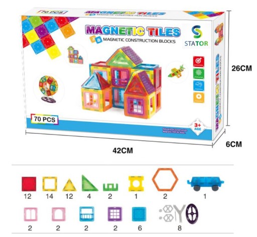 KLOCKI MAGNETYCZNE 70 ELEMENTÓW EDUKACYJNE 3D