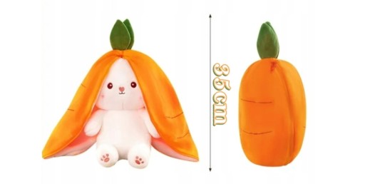 - Maskotka uroczego króliczka z zabawnymi długimi uszkami, które... przemieniają go w marchewkę!