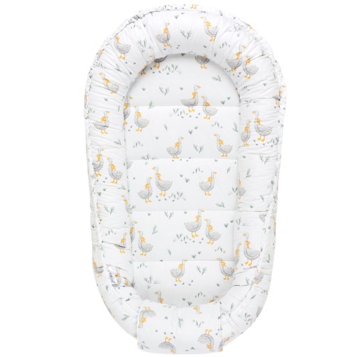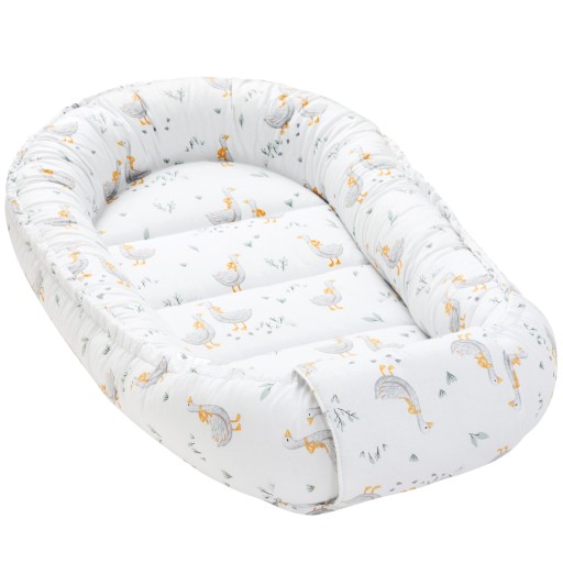 - Dwustronny kokon niemowlęcy o wymiarach zewnętrznych: 55 x 100 cm, wymiary powierzchni do spania: 30 x 70 cm, szerokość burty 14 cm,