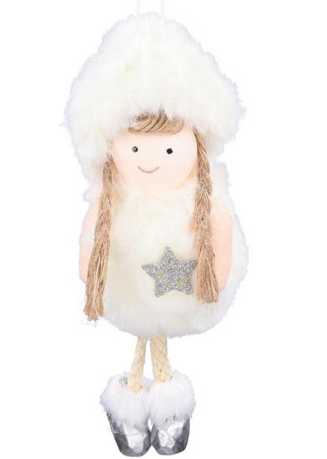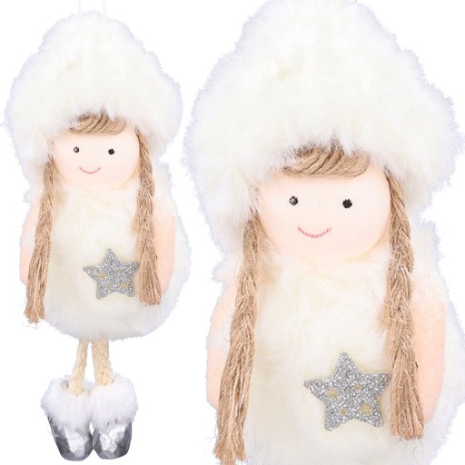 PIĘKNE LALECZKI ANIOŁKI ZE ZWISAJĄCYMI NOGAMI W FUTRZANYCH CZAPECZKACH -19 cm