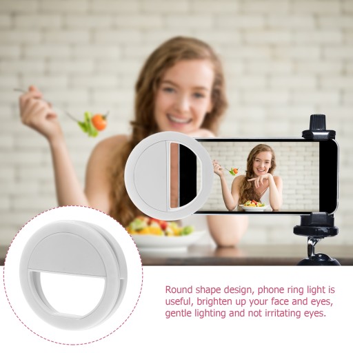 ✅ Okrągły kształt, lampa pierścieniowa telefonu jest przydatna, rozjaśnia twarz i oczy, delikatne oświetlenie i nie drażni oczu.