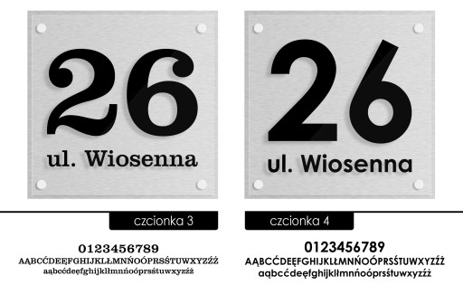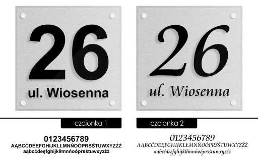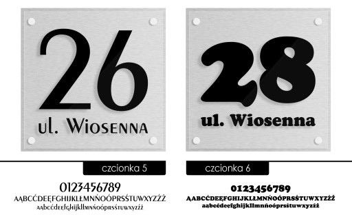 Proponujemy 10 estetycznych i bardzo czytelnych czcionek. Wszystkie posiadają polskie znaki. Dlaczego 10 a nie 50? Ponieważ mamy duże doświadczenie w realizacji tablic adresowych, wiele czcionek kompletnie nie nadaje się do zapisania adresu dlatego właśnie korzystamy tylko z tych, które uważamy za właściwe.