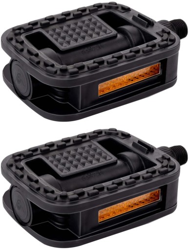 Dzięki szerokiej i antypoślizgowej powierzchni jazda na rowerze będzie bezpieczna i bardziej przyjemna. Zapewni stabilne ułożenie stopy, co przełoży się na wysoki komfort jazdy. Odblaski umieszczone w pedałach zapewnią dodatkowe zabezpieczenie podczas jazdy po zmroku.