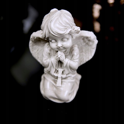 - Kształt: modlący się aniołek z różańcem