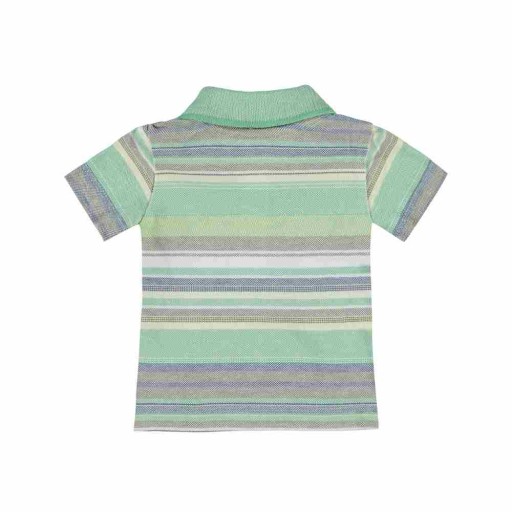Chłopięca polówka z krótkim rękawem, która będzie nadawać się na co dzień oraz na specjalne okazje jak np. przyjęcie na świeżym powietrzu. Bluzka jest z krótkim rękawem, więc idealnie będzie się nadawać w ciepłe, letnie dni oraz w chłodniejszy czas pod sweterek. Polówka jest w kolorowe paski, co fajnie ożywia całość i nadaje jej chłopięcego charakteru. Kołnierzyk jest miękki, więc będzie go można schować pod cieplejszą bluzą, a niewielka kieszonka z przodu na piersi pełni bardziej funkcję ozdobną. Bluzeczka rozpinana jest na napy pod szyją co z pewnością ułatwi jej zakładanie i zdejmowanie. Kolorowa, miękka, wykonana z wysokiej jakości bawełny bluzeczka będzie pasować do niemal każdej chłopięcej stylizacji i sprawi, że podczas zabawy każdy młody mężczyzna będzie czuł się swobodnie. Skład: 100% Bawełna