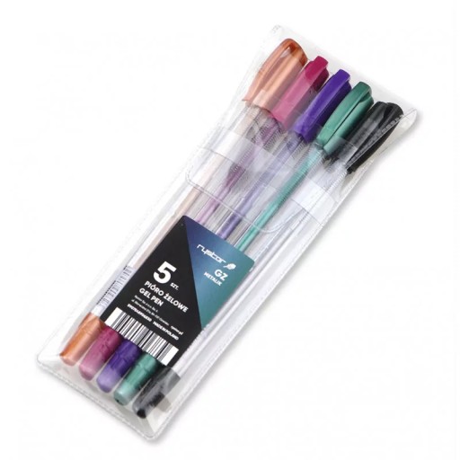 DŁUGOPISY ŻELOWE KOLOROWE METALICZNE 5 SZTUK W ETUI RYSTOR