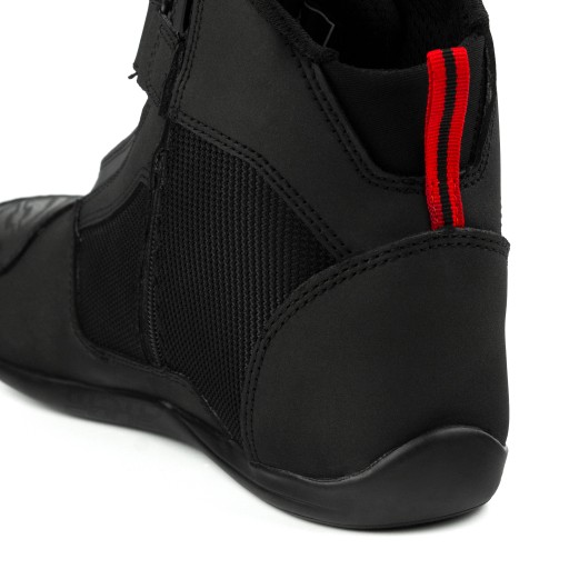 Krótkie, miejskie buty motocyklowe – Ozone CITY. Będą odpowiednim uzupełnieniem stylówki na motocykl typu naked lub klasyk. Posiadają wygodne sznurowania oraz zapięcie na rzep i zamek – dla wygody zakładania. Ochraniacze kostki i wzmocnienie pod dźwignię zmiany biegów, olejoodporna i antypoślizgowa podeszwa sprawiają, że buty Ozone City są bezpieczne.