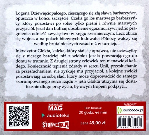 Inkwizytor Glokta, kaleka, który stał się oprawcą, nie ucieszyłby się z niczego bardziej niż z widoku Jezala powracającego do domu w trumnie. Z drugiej strony człowiek ten nienawidzi każdego. Konieczność tępienia zdrady w sercu Unii, przesłuchanie za przesłuchaniem, nie zyskuje mu przyjaciół, a kolejne zwłoki pozostawiają za sobą ślad, który może doprowadzić do samego skorumpowanego serca rządu jeśli Glokta utrzyma się dostatecznie długo przy życiu, by owym tropem podążyć...